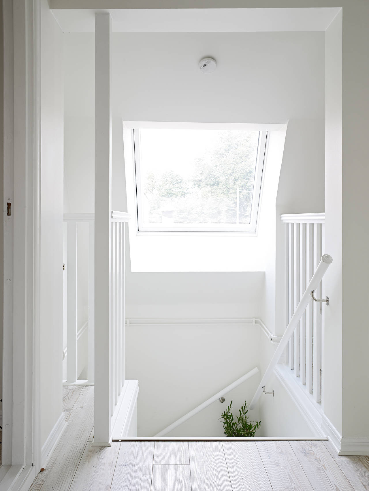 Białe schody prowadzące na poddasze totalnie mnie oczarowały: